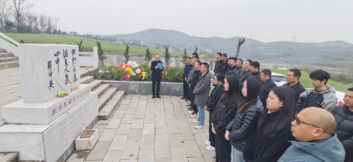 活动现场,全体党员整齐列队,向革命烈士纪念碑敬献花篮,并集体默哀一分钟,表达对英烈的崇高敬意。随后,党支部书记孔庆锐带领全体党员重温入党誓词,进一步坚定理想信念。青年党员代表余昊阳在发言中表示,要珍惜当下的幸福生活,以革命先辈为榜样,立足岗位、奋发有为,为公司高质量发展贡献力量。活动最后,全体党员高唱《中华人民共和国国歌》,激昂的歌声回荡在陵园上空。